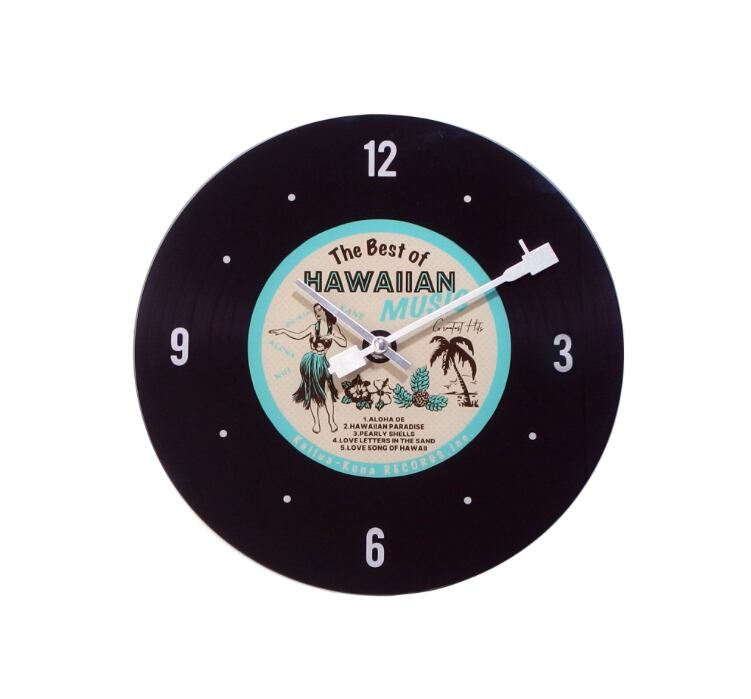 レコードデザインが施されたこのガラスウォールクロックは、見た目にも楽しいアイテムです。シンプルでありながら、音楽の魅力を感じさせる洗練されたスタイルがあなたの空間に個性を与えます。